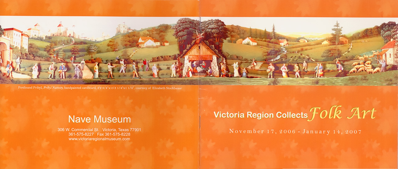 The Stockbauer Nativity scene has been displayed in their home during many holiday seasons and was on public display at the Nave Museum in Victoria in 1979. It was subsequently displayed at the Nave Museum during the 2006 Christmas Holiday season in the "Victoria Region Collects Folk Art" exhibition. The profile in the exhibition program written about Ferdinand Pribyl can be viewed here.