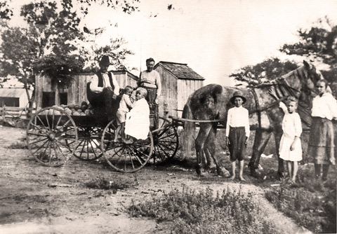 Jan Pribyl lived with Albert and Antonia (Pribyl) Stockbauer in his elder years. This photo shows the family on Jan's original homestead. | Albert and Antonia with children on farm. |