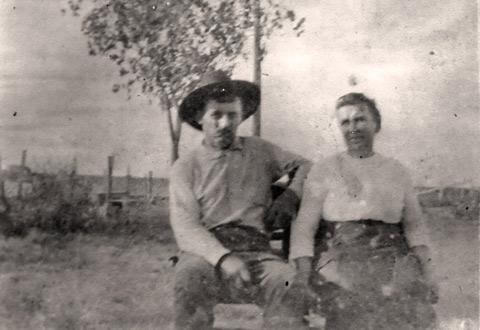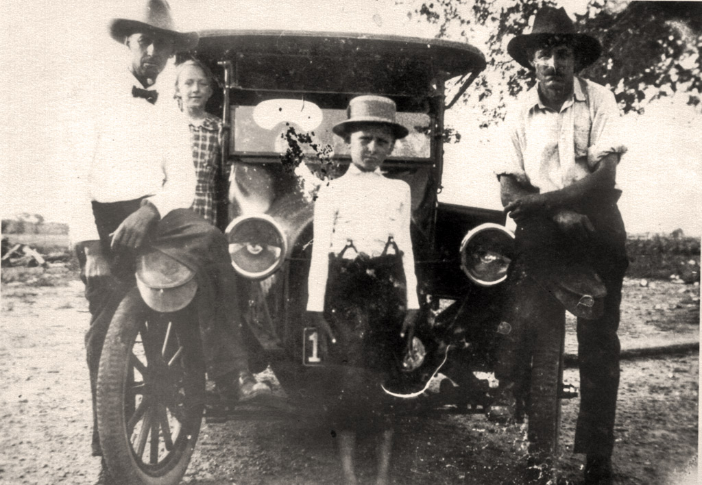 Fred & Elizabeth Stockbauer. Fred was the son of Albert Stockbauer, an orphan taken in by his aunt and uncle, Ferdinand and Anna Pribyl. His mother was Antonia, daughter of Jan Pribyl. | Ferdinand's son, Anton, on left, with his son, Adolph, in front center and Albert Stockbauer, Sr. on right with his daughter, Rose, on running board behind Anton. | Antonia (Jan's daughter) and Albert Stockbauer, with children, John and Minnie. Fred is sitting in cantaloupe patch. | Front row: Anton (Ferdinand's son) and wife Frances Pribyl. Back row: Their children, Edwin, Annie, and Adolph. |