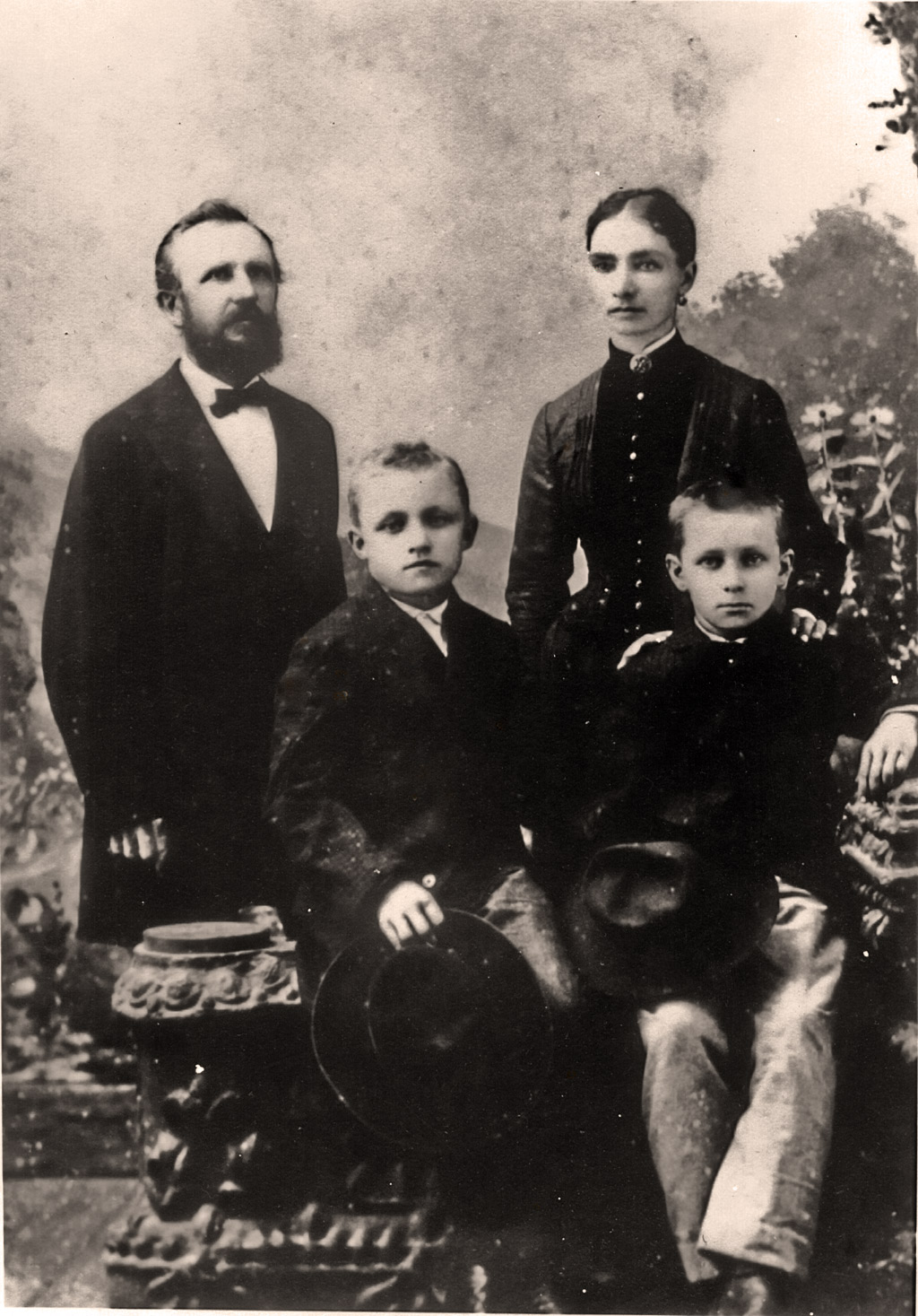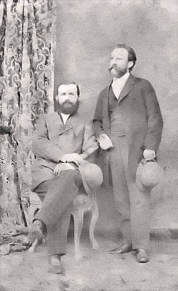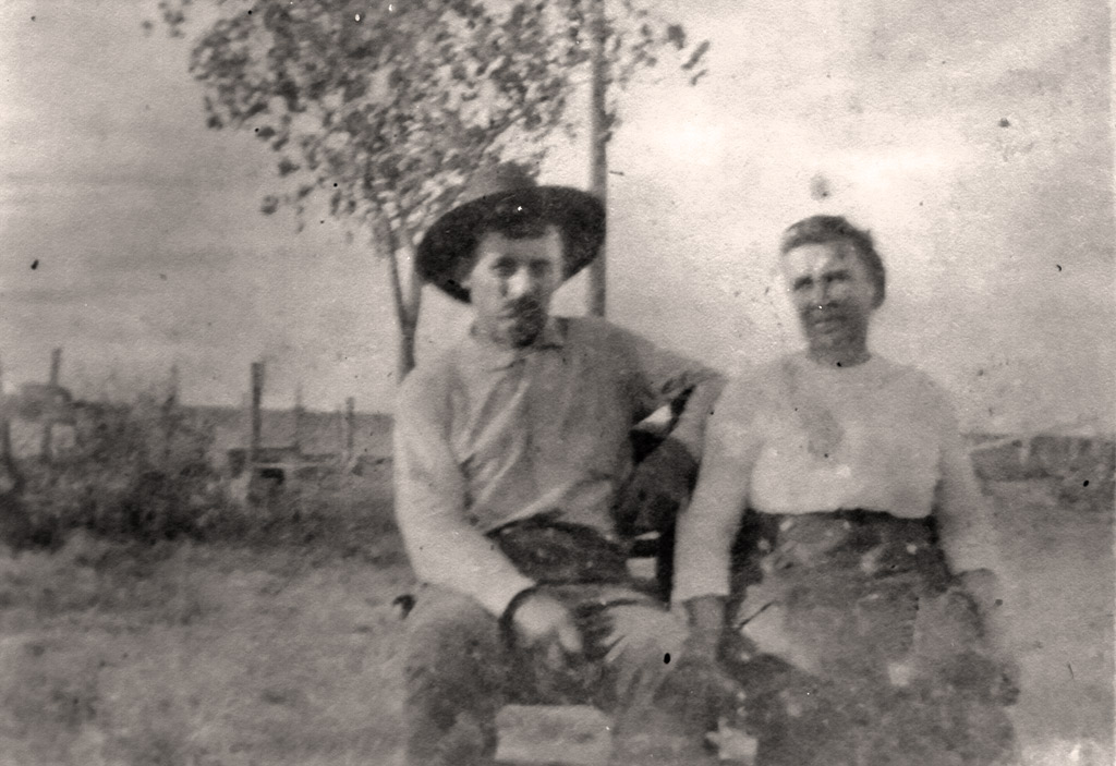 Ferdinand Pribyl (on right) as a young man in Europe, with friend Joseph Wisner. | Ferdinand and Anna with nephew Albert Stockbauer (left front) and son Anton (right front). | Jan Pribyl |