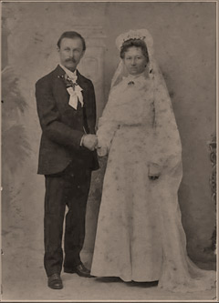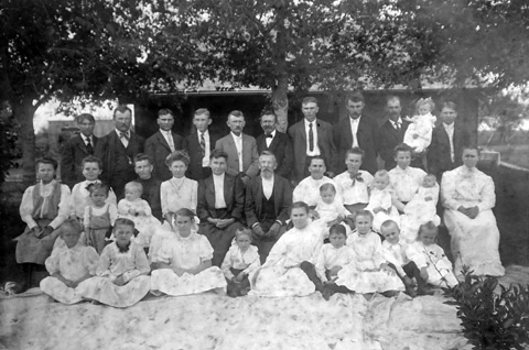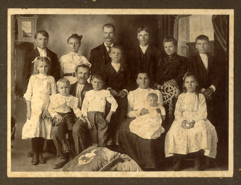 Anton Pribyl, Ferdinand and Anna's son. | Anton and bride, Frances Pesek. | William Pribyl was Jan's oldest son, who married Frances Sedelmeyer. William and Frances are seated in front surrounded by their children and son-in-law, Vaclav Stockbauer (back row, 3rd from left), half brother of Albert. | |