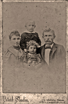 Bedrich (B.F.) Pribyl with his wife, Johanna (Rainosek), and children, Victor and Annie. (ca. 1897) | Henry Pribyl (Jan's son), a musician, was killed in 1887 while interceding in a fight in a LaGrange dance hall. | Libusa and Antonia Pribyl (Jan's daughters). Antonia was born in America in 1874, one year after her parents immigrated to Texas. | Antonia Pribyl |