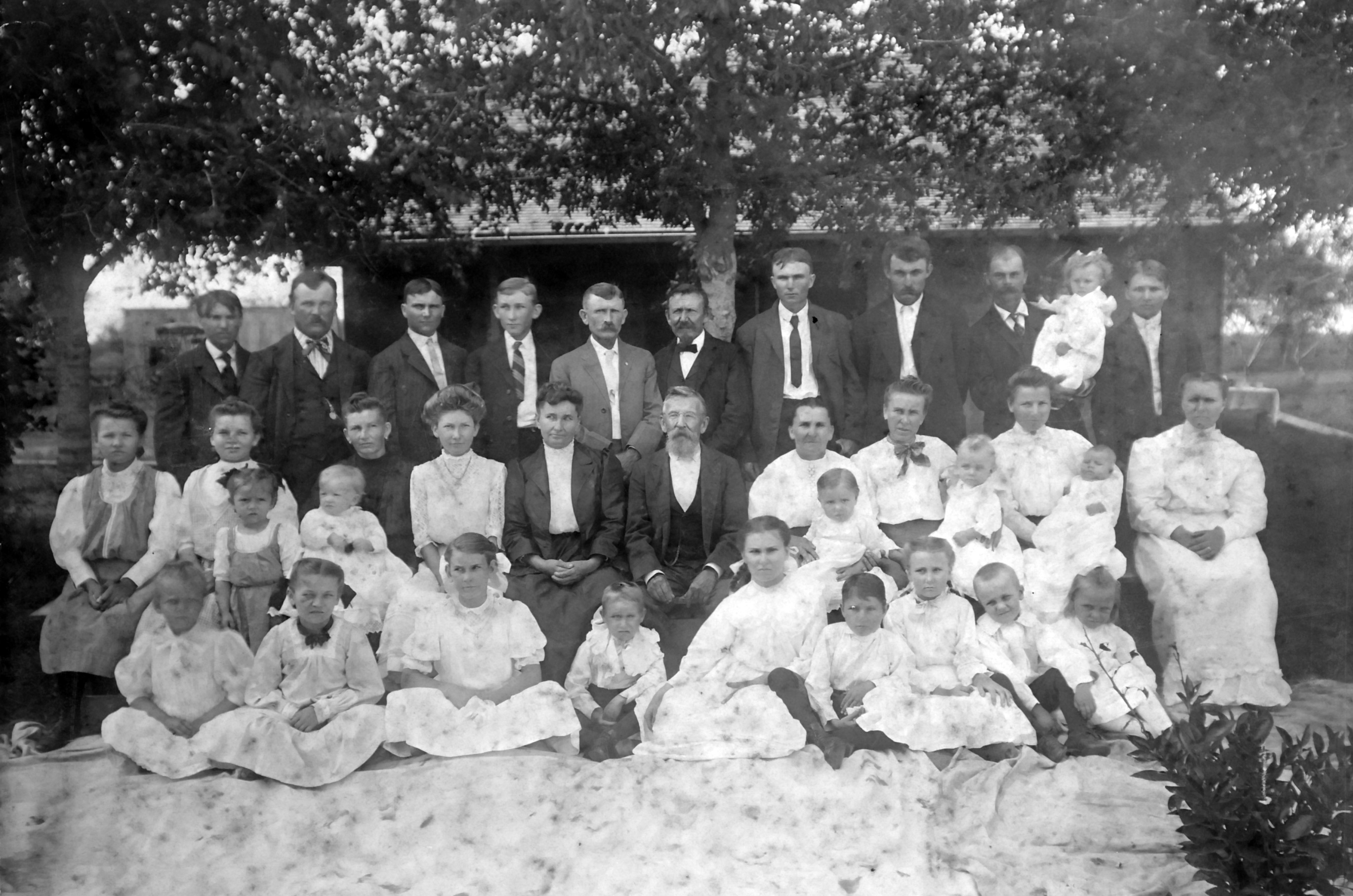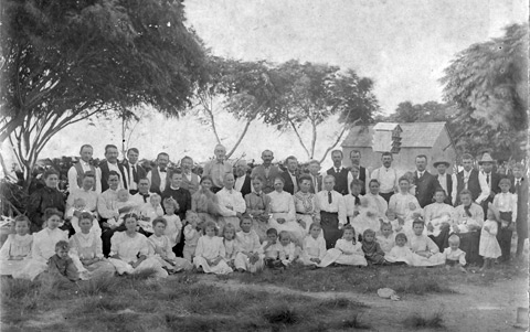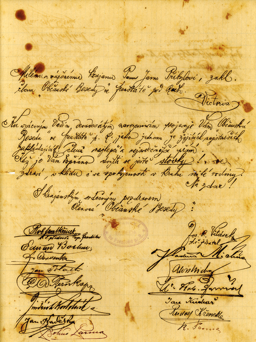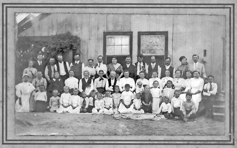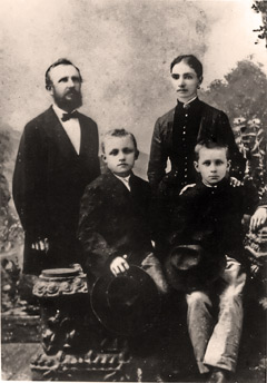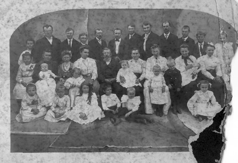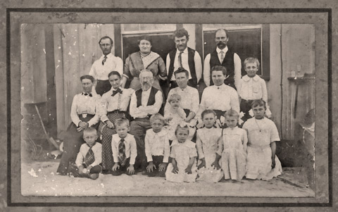 The letter at left was sent to Jan from Frenštát in 1921 in celebration of his 90th birthday. It is signed by 22 members of the Citizenship Club of Frenštát, a fraternal organization he had helped found as a young man. “To the oldest living member, we hope that you will reach 100. We wish you good health and quiet contentment in the midst of family.” Photo at right is the family of Wilhelm and Libusa Baass (Jan's daughter), who carefully preserved the family documents. Their granddaughter, Mary Lou Urban, still lives on part of Jan's original 500-acre tract in Victoria, Texas. |