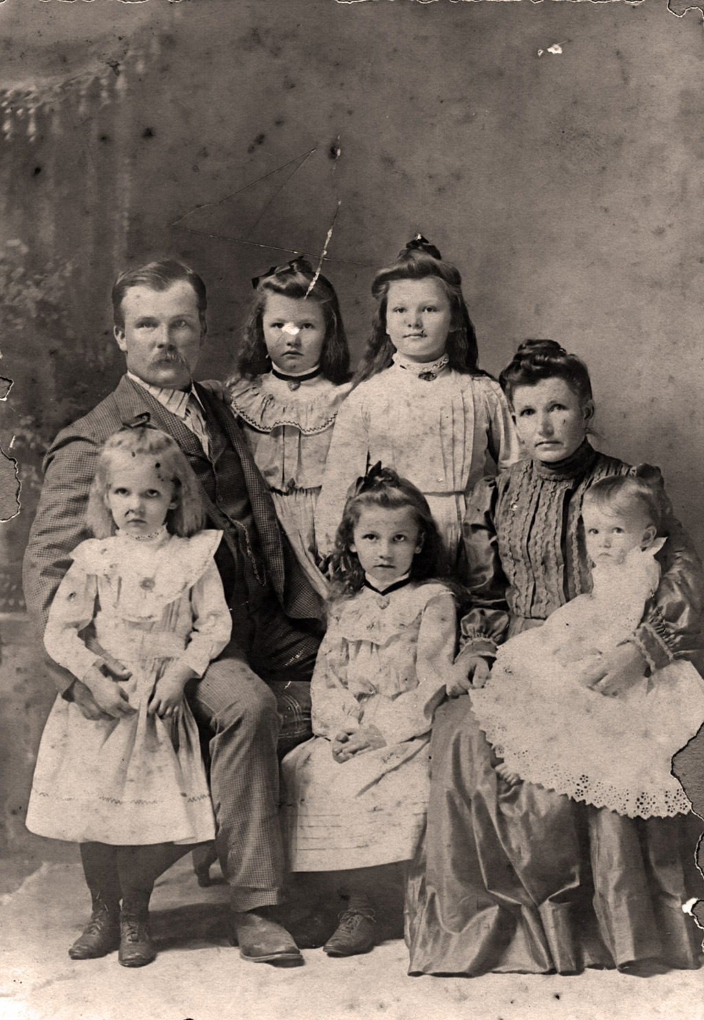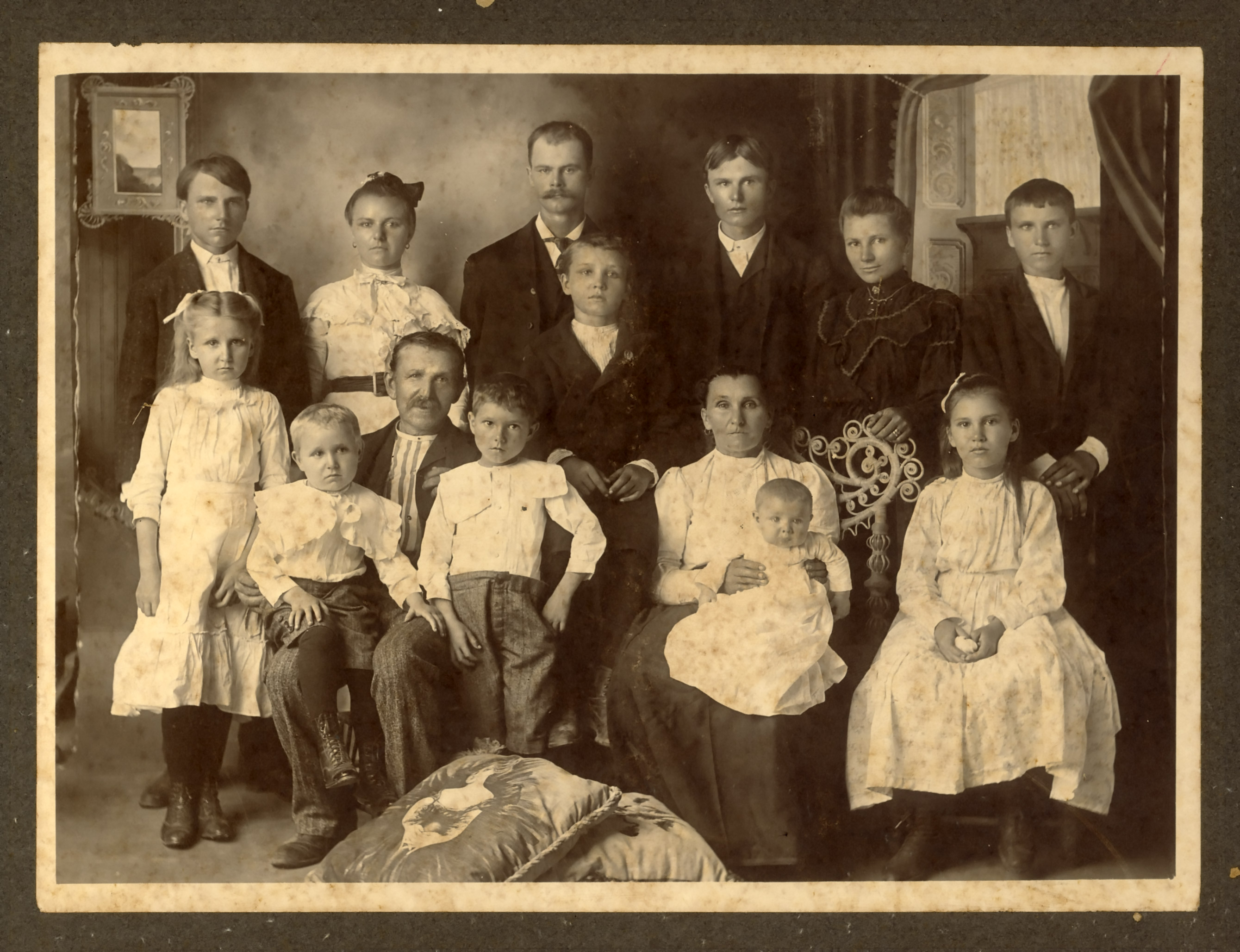 Pribyl Family Group. In back row, Jan is 5th and Ferdinand 7th from left; Anna is in second row, to Ferdinand's left. | Pribyl Family Group Photo. Jan, Anna and Ferdinand seated on 2nd row 4th, 5th & 6th from left. | ||
