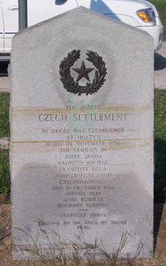 A steady stream of Czech settlers began to enter Central Texas in the 1850’s, inspired by the reports of early immigrants, like Rev. Josef Arnost Bergman, who wrote letters back to the homeland extolling the benefits of the area. Soon the whole countryside became dotted with small settlements, Fayetteville, Mulberry (now Praha), Dubina, Ross Prairie, etc., and the Czechs became the dominant settlers, outnumbering the Germans who had arrived earlier. The Czech immigrants shared certain values in common: a closely-knit family structure, a love of the land and aptitude for farming, and a love of education. Jan and Ferdinand’s maternal uncle, Alois Klimicek, was among the earliest Czech settlers in Texas, with his group emigrating from Moravia in 1856. He settled in Bluff, south of LaGrange and his name can be seen engraved on an historical marker (see photo left) located near the river bluff south of the city. These immigrants had left their homeland for various reasons. Living conditions were extremely difficult for the common people who lacked the ability to farm because most of the land was held by the nobility. Politically they were under the rule of the Austro-Hungarian Empire, and their national pride and aspirations were severely repressed. In the region around Frenštát, where Jan and Ferdinand were born, family cottage industries producing hand-woven fabrics had supported the peasantry for decades, but the introduction of mechanized weaving had begun to eliminate that means of income. Consequently many chose to emigrate in order to be able to own land and start a new life for themselves and their descendants. |